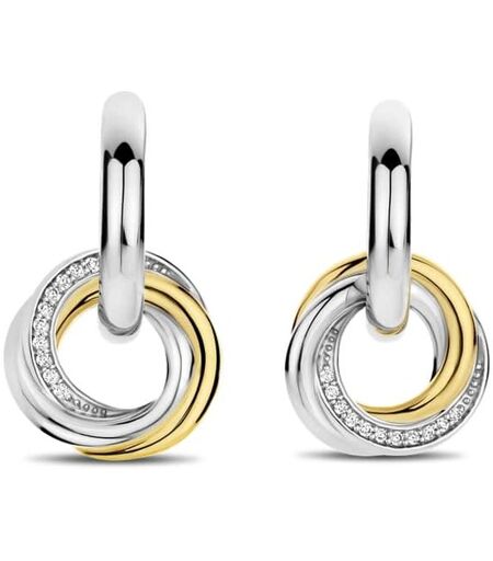 Orecchini In Argento 925%, Modello Pendente Con Cerchietto Bicolor E Zirconi. ...