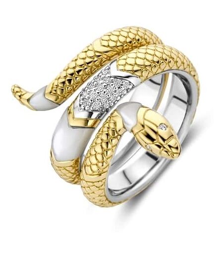Anello In Argento 925% Modello A Serpente Dorato E Madreperla con Zirconi Bianchi ...