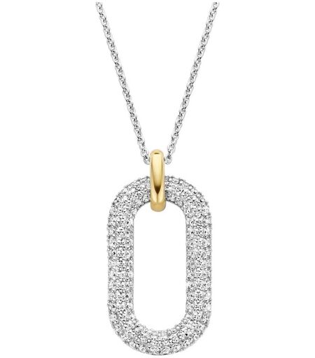 Collana In Argento 925%, Modello Pendente A Maglia Ovale Incastonata Da Zirconi Bianchi.Lunghezza 42 cm ...