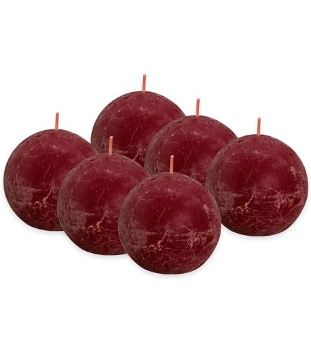 BOLSIUS Rustik - Candela sferica - colore rosso bordeaux - set da 6 pezzi - lunghezza 25 ore - non profumata - guardia naturale delle piante - senza olio di