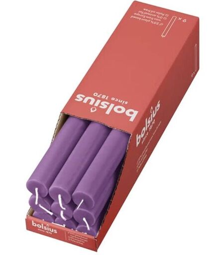 BOLSIUS Candele rustiche – viola – 9 pezzi – 27 x 2,3 cm – lunghezza durata 13 ore – non profumate – cera vegetale naturale – senza olio di palma -