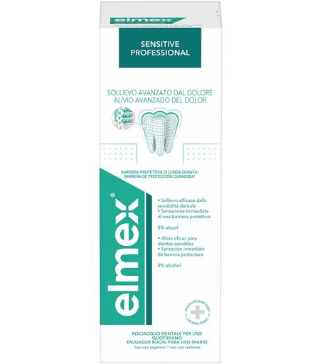 elmex - SENSITIVE PROFESSIONAL COLLUTORIO Collutorio con fluoruro amminico utile nei casi di colletti dentali scoperti e denti sensibili. Formato Flacone da 400 ml. ...