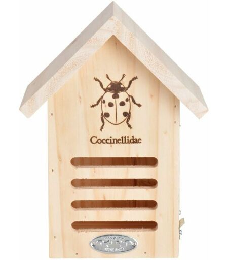 Casetta in legno pensata per far nidificare la coccinella. La casetta è impreziosita dal disegno di questo simpatico insetto e dal suo nome latino In legno Dimensioni: 17x12x23cm. ...