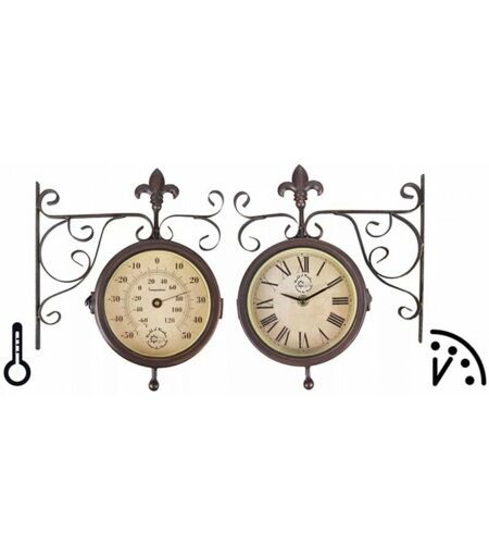 Questo orologio decorativo da esterno ha un aspetto elegante. Double face, ha due lati da esterno mostra l'ora su un lato e la temperatura sull'altro. Questo orologio con termometro può mostrare le temperature tra - 50 °C e 50 °C. L'ora è mostrata in numeri romani.L'orologio è realizzato in metallo con finitura in bronzo anticato. Il supporto ha riccioli graziosi e fleur de lis nella parte superiore.La batteria non è inclusa. Caratteristiche dell'orologio: Dimensione complessiva: 25 x 8,7 x 28,5 cm (L x P x A) Materiale: Metallo + PVC Colore: Bronzo / marrone Doppia faccia Batteria: 1,5 V AA (non incluse) Le misure di temperatura: -50 ° C a 50 ° C (-58 ° F a 122 ° F). ...