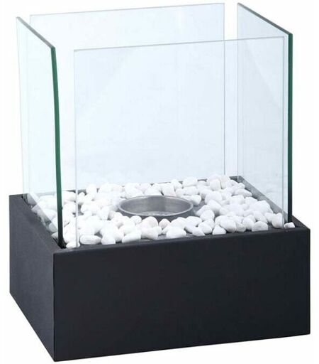 Elegante braciere rettangolare con alimentazione a bioetanolo e pratica protezione dalla fiamma Dotato di sassi alla base per un effetto elegante e romantico Ideale per essere appoggiato su tavoli e tavolini Dimensioni: 24,8x21x28,2 cm - Peso: 3,06 Materiale: Ferro, vetro, acciaio inox, pietre, vetroresina. ...