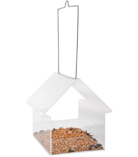 Simpatica e pratica mangiatoia appendibile a forma di casetta in materiale acrilico trasparenteAperta da entrambi i lati permette un facile accesso degli uccellini ed è dotata di una comoda maniglia per poterla appendereDimensioni: 14,5x15,1x15,3cm. ...