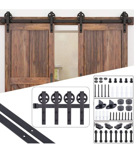 STOEX - Binario per Porta Scorrevole Kit Kit per Porte Scorrevoli Ferramenta per Porta Della Stalla per Doppia Porta - 352CM/11.5FT