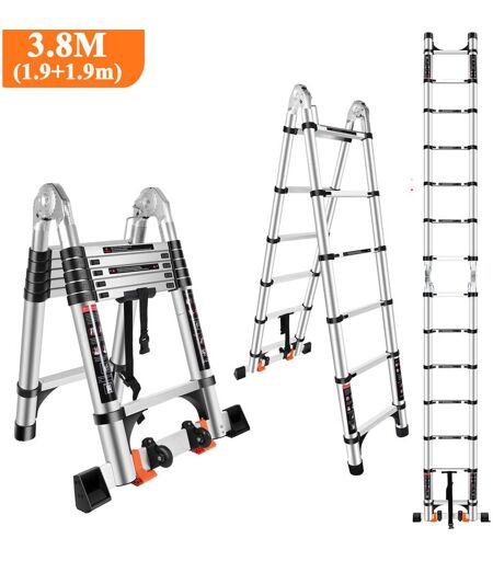 Modello: Scala pieghevole 3,8M (1.9M+1.9M) Scala in alluminio di alta qualità, resistente e antiruggine. Può raggiungere una portata massima di 150 kg. Il fondo della scala è in gomma nera antiscivolo e i due gradini adiacenti sono dotati di una coppia di chiusure che garantiscono la sicurezza e l'affidabilità della scala. Il design pieghevole è semplice e flessibile, per cui è facile da spostare e poco ingombrante da riporre. Ogni sezione di bloccaggio è indipendente dall'altra e può quindi essere regolata ad altezze appropriate per le diverse esigenze. La scala è dotata di 2 rotelle: quando è necessario spostarsi durante l'uso, è possibile aprire le rotelle, il che è molto pratico per gli spostamenti. Naturalmente, le rotelle sono anche rimovibili. Rispetto alle scale della maggior parte dei venditori, abbiamo apportato dei miglioramenti. Abbiamo aggiunto un firmware di fissaggio a forma di arco, in modo da rendere la scala più stabile. Abbiamo anche aggiunto 2 tappetini antiscivolo ...
