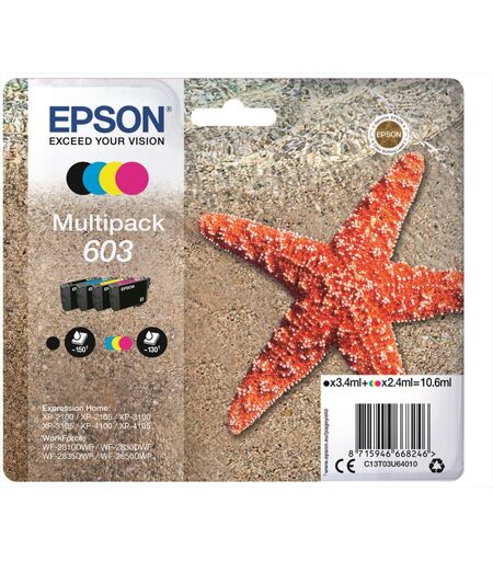 Epson 603 Stella Marina T03u Standard Multipack 4 Colori-nero, Ciano, Magenta, Giallo