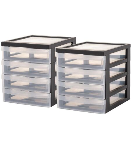 IRIS OHYAMA Cassettiera in Plastica, Portaoggetti, 4 Cassetti Medi, Lotto di 2, Nero, Apertura Facile, Formato A5, Trasparente, Per Ufficio, Documenti,