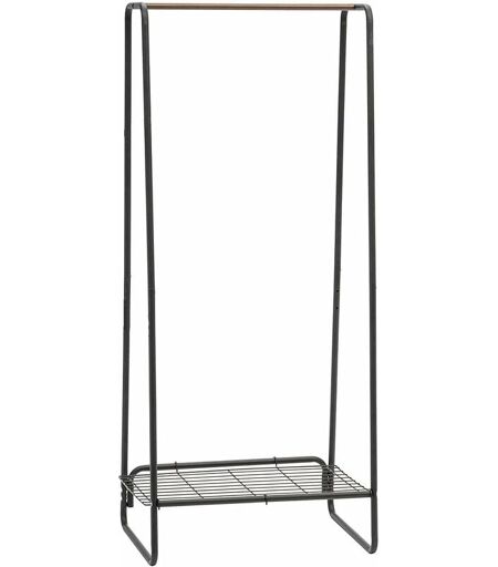 IRIS OHYAMA Appendiabiti in Metallo con Ripiano in Legno, 2 Livelli, Nero, Design Moderno, Solido, Anti scivolo, Per Camera, Studio, Armadio, Abbigliamento e