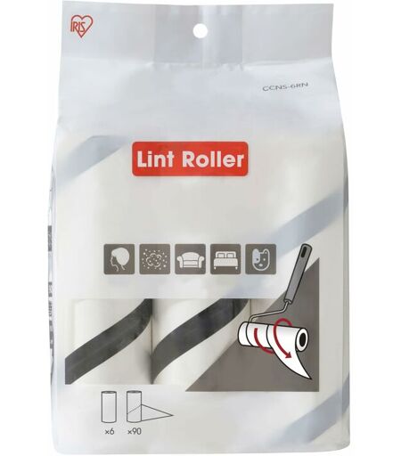 IRIS OHYAMA Confezione da 6 Ricariche da 90 Fogli, Animali, Adesivo, Robusto e Forte, Vestiti, Tende, Divani - Pratico Rullo Pelucchi CCNS-6RN - Bianco - Iris