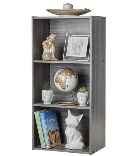 IRIS OHYAMA - Mobile, Libreria, Scaffale Angolare da Parete in Legno, 3 Livelli, Grigio, Polivalente, Modulare, Aperto, Per Soggiorno, Ufficio,