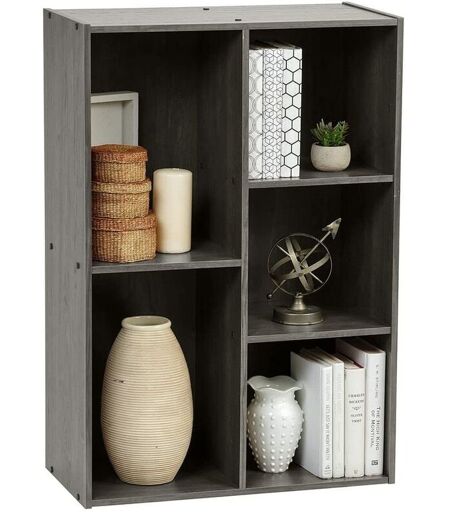 IRIS OHYAMA Mobile, librerie larghe 60 cm, Scaffale Angolare da Parete in Legno, 5 Livelli, Grigio, Polivalente, Modulare, Aperto, Per Soggiorno,