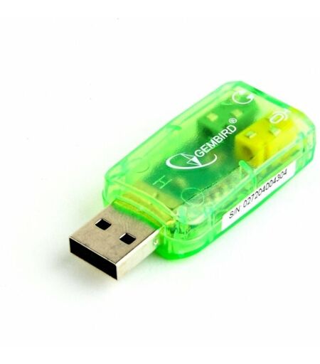 Surround sound card 2/4/6 Canali con supporto suono 3D. Supporta casse stereo 2.1, 4 canali, casse 4.1 e 5.1. Riproduzione e registrazione Full-duplex Qualità audio superiore Specifiche Tecniche 3.5 mm sockets: stereo output, microphone mono input Power consumption: up to 1 W Dimensions: 52 x 23 x 12 mm Net weight: 8 g Requisiti di sistema Windows® Windows 7/8/10 Free USB port ...