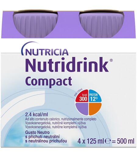 NUTRICIA - Nutridrink Compact - Gusto neutro - Descrizione Alimento a fini medici speciali per la gestione dietetica della malnutrizione. Supplemento nutrizionale orale ad alto valore energetico e calorico (2 4 kcal/ml) e normoproteico con 12 g di proteine per bottiglia (125 ml) nutrizionalmente … ...