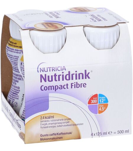 - DESCRIZIONE PRODOTTO: - Nutridrink Compact Fibre Caffè è un integratore nutrizionale completo ed ipercalorico, con 300 kcal per bottiglietta, arricchito con fibre, in volume ridotto (125 ml). Contiene una combinazione di minerali… ...