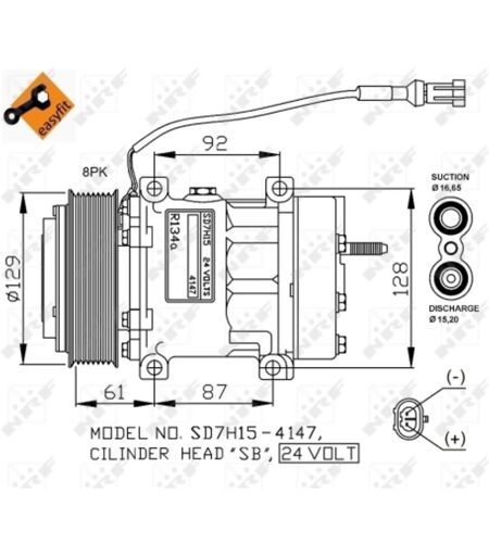 Articolo complementare/info integrativa 2: con olio compressore-PAG, con anello tenuta. Cilindrata-compressore [cm³]: 154,9. Entrata-ø [mm]: 16,65. Forma alloggiamento spina: ovale. Id compressore: SD7H15. Id-testata (compressore): SB. Indice: NRF 32780. Limitazione costruttore: SANDEN-EQUIVALENT. Numero del Produttore: 32780. N° di scanalature: 8. Olio compressore: PAG 100. Produttore: NRF. Pulegge: con puleggia cinghia Poly-V. Puleggia -ø [mm]: 129. Qualità: OE-EQUIVALENT. Quantitativo riempimento olio [ml]: 175. Refrigerante: R 134a. Tensione [v]: 24. Uscita-ø [mm]: 15,2. ...