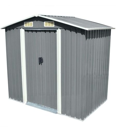 Questo capanno in metallo sarà perfetto per riporre una grande varietà di strumenti e attrezzi. Il capanno ha 4 aperture, 2 sul davanti e 2 sul retro, che assicurano una ventilazione eccellente. Le doppie porte scorrevoli sul davanti permettono di entrare e uscire comodamente. La struttura in acciaio zincato lo rende durevole e forte, perciò non si corroderà né subirà danni a causa del maltempo. Include anche una struttura per pavimento in acciaio che assicura stabilità ed è perfetta per una pavimentazione in legno (legno non incluso). Le parti pre-tagliate e pre-forate e il manuale delle istruzioni incluso assicurano un assemblaggio veloce e facile. Colore: Grigio Materiale: Acciaio zincato Dimensioni con tetto: 204 x 132 x 186 cm (L x P x A) Fornito di 4 aperture, ognuna della dimensione di 23 x 10 cm Dimensioni porta scorrevole: 80 x 154 cm (L x A) Dimensioni del tetto: 204 x 132 cm (L x P) Superficie a terra: 194 x 119 cm (L x P) ...