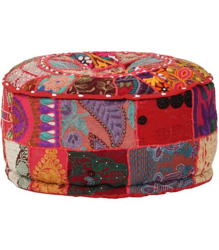 VIDAXL - Pouf Patchwork Rotondo Fatto a Mano in Cotone 40x20 cm Rosso