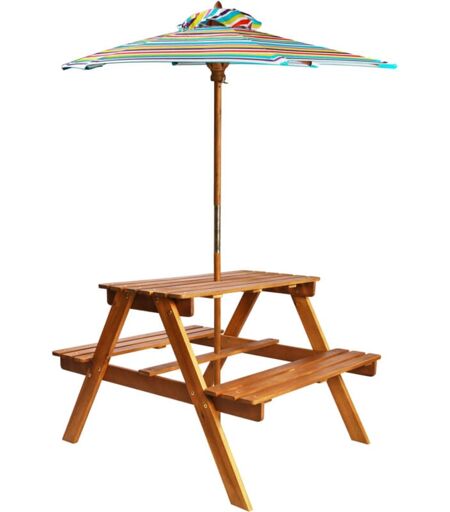 VIDAXL - Tavolo Picnic per Bambini con Ombrellone 79x90x60cm in Acacia