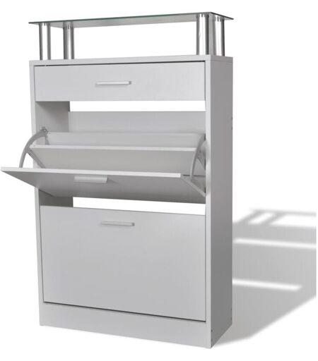 VIDAXL Scarpiera con Cassetto e Mensola Vetro Sopra in Legno Bianco -