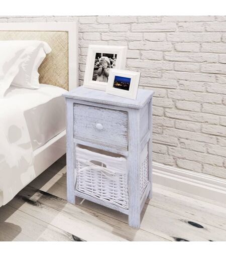 Aggiungete un tocco di charme rustico alla vostra casa con questo comodino chic! Può anche essere utilizzato come mobile porta telefono, armadietto, cassettiera, armadio, comodino, tavolino, ecc. Questo comodino compatto ha un cassetto con scorrimento dolce che offre ampio spazio per riporre piccoli oggetti in modo ordinato e a portata di mano. Sotto il cassetto, troverai un cestino di vimini per avere ulteriore spazio. L’interno in tessuto del cestino può essere rimosso e lavato. Colore: Bianco Materiale: Legno di paulownia Dimensioni complessive: 28 x 31 x 45 cm (L x P x A) Dimensioni del cassetto: 18,5 x 26,5 x 13,7 cm (L x P x A) Dimensioni del cesto: 17 x 25 x 18 cm (L x P x A) Con 1 cassetto e 1 cesto di vimini Può essere utilizzato come mobile porta telefono, armadietto, cassettiera, comodino, tavolino, tavolino da notte, armadietto laterale, ecc. ...