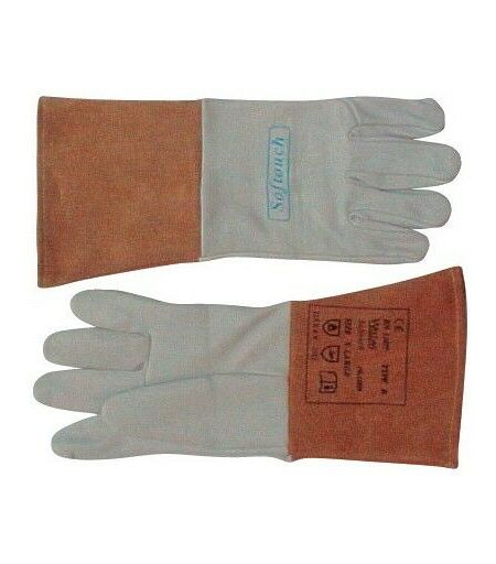 Guanto di saldatura (Argon) n. 10-1009 ammissione/norma: EN 388, EN 407, EN 12477 (09 2005) tipo B, testato elettrostaticamente secondo EN 1149-2 proprietà: Esecuzione leggera: Mano in pelle di capra camyelled Bracciale in cuoio di clivaggio Dito indice senza saldatura Cucito con 3-fold KEVLAR ® Certificato secondo ...