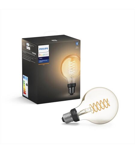 Lampada a LED - 7 Watt - Attacco E27 - Funzione dimming - 550 lm - Colore Temperatura 2100 K - Tensione 230 V - Classe energetica A+ - Wireless 802.11a/b/g/n/ac - Protocollo Z-Wave - Protocollo ZigBee - Applicazione iOS - Android - Formato a globo - Vetro chiaro ...