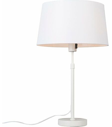QAZQA Lampada da tavolo bianca con paralume bianco 35 cm regolabile - Parte Ti piace un tocco classico nei tuoi interni? Allora questa lampada da tavolo Parte fa proprio al caso tuo! Una lampada da tavolo moderna, rifinita in metallo bianco. Dotata di un elegante paralume bianco. L'apparecchio è dotato di un interruttore on/off. La Parte può essere facilmente regolata in altezza grazie al meccanismo scorrevole. L'apparecchio (senza paralume) ha un'altezza massima di 50 cm, ma può essere regolata fino a un minimo di 34 cm, quindi scegli l'altezza che desideri! La base della lampada ha un diametro di 14 cm. È dotata di un attacco E27, quindi assicurati di avere una lampadina (max. 60W) per questa Parte e goditi la tua lampada d'atmosfera per il soggiorno o la camera da letto! Può essere facilmente smorzata con un dimmer esterno. Crea un'atmosfera piacevole nella tua casa con la tua lampada da tavolo! Portalampada: E27 . Max 1 x 60 W, 230 V Adatto a: Incandescente, Algogene, ...