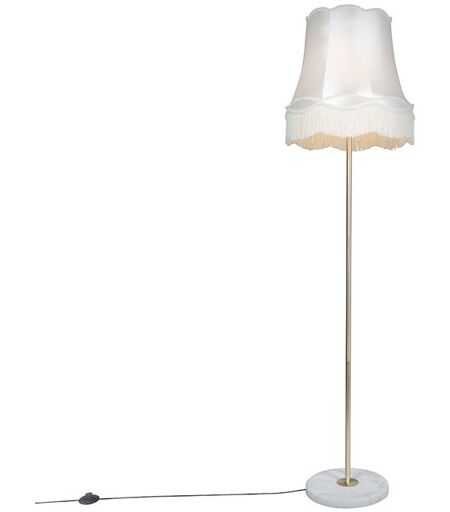 QAZQA Lampada da terra retrò in ottone con paralume Granny crema 45 cm - Kaso Autentica in una nuova veste. Questa bellissima lampada da terra Granny ha il design dell'antico paralume della nonna, ma con un tessuto alla moda e nuovo. Questa lampada da terra si adatta perfettamente a qualsiasi interno perché ha qualcosa di vecchio ma sicuramente anche qualcosa di nuovo e alla moda. La lampada ha un diametro di 45 cm e un'altezza di 175 cm. La base ha un diametro di 30 cm. Il cavo è lungo 200 cm. È possibile completare la lampada con una lampadina con attacco E27 (max. 60W), da ordinare separatamente. La lampada è dimmerabile con un dimmer esterno (dimmer non incluso). Il bellissimo tessuto, il colore luminoso e la bellissima base in ottone e marmo rendono questa lampada da terra Granny un vero e proprio colpo d'occhio all'interno della tua casa! Portalampada: E27 . Max 1 x 60 W, 230 V Adatto a: Incandescente, Algogene, LED,Risparmio energetico Voltaggio: 220V/230V IP Classe di ...