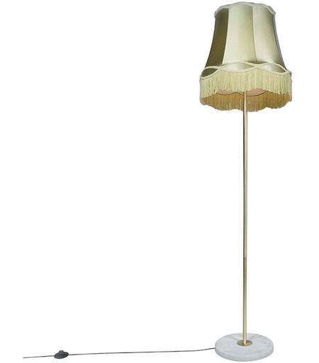 QAZQA Lampada da terra retrò in ottone con paralume Granny verde 45 cm - Kaso Autentica in una nuova veste. Questa bellissima lampada da terra Granny ha il design del vecchio paralume di tua nonna, ma con un nuovo tessuto. Questa lampada da terra si adatta perfettamente a qualsiasi ambiente perché ha qualcosa di vecchio ma anche qualcosa di nuovo e moderno. La lampada ha un diametro di 45 cm e un'altezza di 175 cm. La base ha un diametro di 30 cm. Il cavo è lungo 200 cm. Puoi completare la lampada con una lampadina con attacco E27 (max. 60W), ma questa deve essere ordinata separatamente. La lampada è dimmerabile con un dimmer esterno (dimmer non incluso). Il bellissimo tessuto, il colore divertente e la bella base in ottone e marmo rendono questa lampada da terra Granny un vero e proprio colpo d'occhio nei tuoi interni! Portalampada: E27 . Max 1 x 60 W, 230 V Adatto a: Incandescente, Algogene, LED,Risparmio energetico Voltaggio: 220V/230V IP Classe di protezione: [IP20] A prova di ...