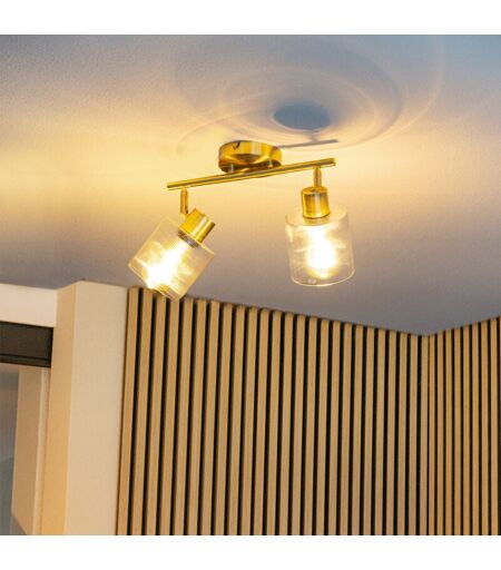 QAZQA Faretto da soffitto dorato con vetro 2 luci orientabile - Laura Video Ecco Laura, il faretto da soffitto perfetto che aggiunge un tocco Art Déco ai tuoi interni. L'elegante cornice dorata e i paralumi in vetro rigato intorno ai due punti luce conferiscono a questa lampada un look unico. Con un'altezza di 20 cm e una lunghezza di 56 cm, Laura è un pezzo forte in qualsiasi ambiente. La sua orientabilità consente di posizionare entrambi i punti luce come desiderato. Completa Laura ordinando separatamente le lampadine E27, poiché non sono incluse di serie. L'illuminazione assume una nuova dimensione con l'elegante e funzionale Laura, l'aggiunta perfetta ai tuoi interni! Portalampada: E27 . Max 2 x 40 W, 230 V Adatto a: LED Voltaggio: 220V/230V IP Classe di protezione: [IP20] A prova di polvere Funzioni extra: Regolabile: Dimmer escluso,No, senza cavo e spina Lampadine exclusiva Il QAZQA Faretto da soffitto dorato con vetro 2 luci orientabile - Laura è Oro . Gli spazi abitativi ...