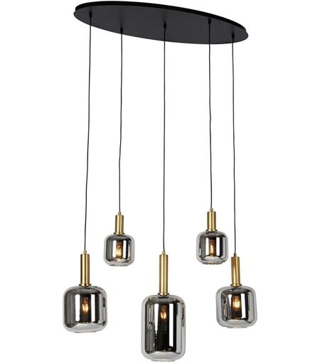 QAZQA Lampada a sospensione tavolo soggiorno zuzanna - Moderno - Vetro,Acciaio - Grigio/Oro/Nero - Ovale Max. 5 x Watt -