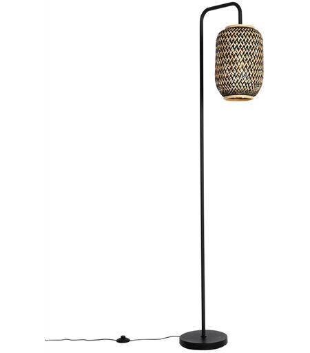 QAZQA Lampada da terra yvonne - Orientale - Bamboo,Acciaio - Nero/Legno - Oblungo Max. 1 x Watt