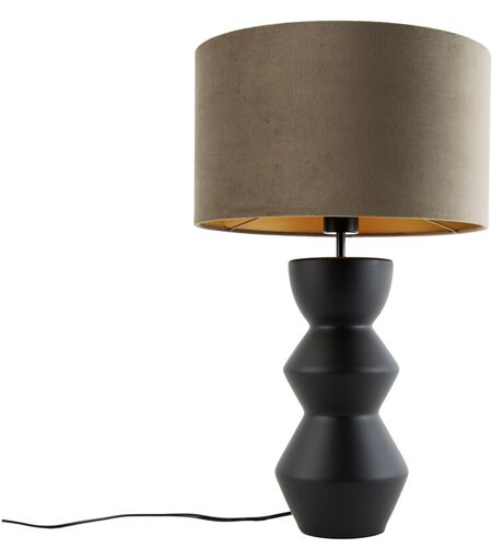 QAZQA Lampada da tavolo con paralume alisia - Design - Ceramico - Taupe/Nero - Tondo Max. 1 x Watt -