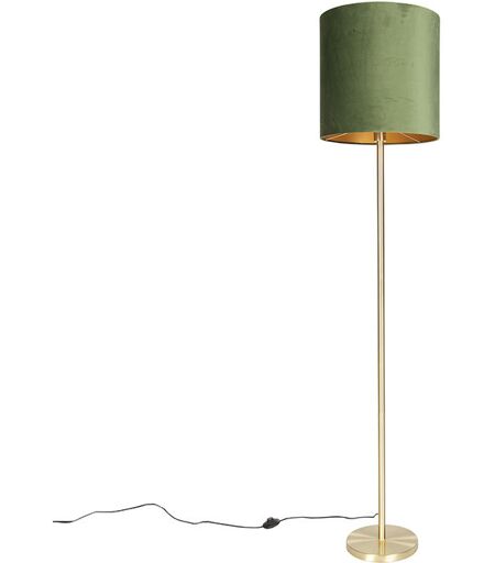 QAZQA Lampada da terra con paralume simplo - Moderno - Acciaio,Tessuto - Verde/Oro/Ottone - Cilindro/Oblungo Max. 1 x Watt -