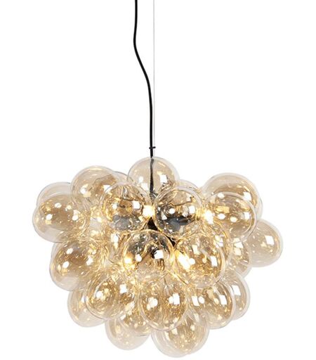 QAZQA Lampada a sospensione tavolo soggiorno uvas - Art déco - Vetro,Acciaio - Nero/Oro/Ottone - Sfera Max. 8 x Watt -