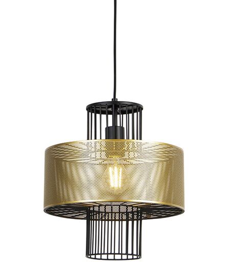 QAZQA Lampada a sospensione tess - Design - Acciaio - Oro/Nero - Cilindro/Tondo Max. 1 x Watt -