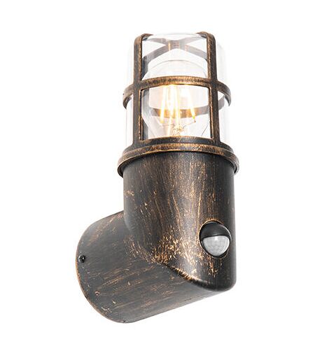QAZQA Lampada da parete per esterni oro antico IP54 con sensore di movimento - Kiki La lampada da parete per esterni Kiki non solo garantisce sicurezza fornendo luce, ma aggiunge anche un tocco vintage al tuo ambiente esterno. La lampada da parete è realizzata in plastica con finitura in ottone/oro. Ha una profondità di 12,8 cm, una lunghezza di 8,4 cm e un'altezza di 20,8 cm. La piastra di montaggio ha una profondità di 2 cm e un'altezza di 8,4 cm. Kiki può essere completata con una lampadina con attacco E27 con una potenza massima di 15 watt. Da ordinare separatamente. Con il suo valore IP di IP54, la lampada da parete è antispruzzo e antipolvere, perfetta per l'esterno! Per creare un'atmosfera ancora più suggestiva, è possibile collegare la lampada a un dimmer, non incluso. Il sensore di movimento garantisce che la lampada si accenda automaticamente quando ci si passa davanti. Super pratico per la porta d'ingresso, ad esempio. Rendi sicuro il tuo ambiente esterno con la lampada da ...