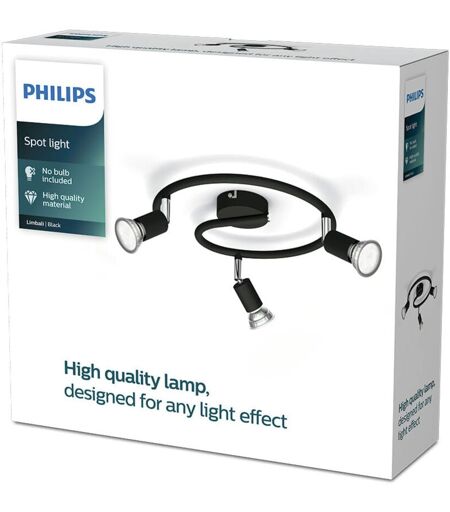 PhilipsPhilips Limbali 3x faretto de soffitto/parete. Tipo di prodotto: Faretto di superficie. Tipo di copertura di lampada: GU10. Adatto per uso interno, Forma della plafoniera: Rotonda. Numero di lampadine: 3 lampadine. Codice IP (International Protection): IP20. Tensione di ingresso: 220-240V. Colore del prodotto: Nero. ...