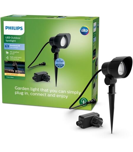 Philips Hue - led GardenLink Kit Base Faretto led da Esterni, Luce Bianca Calda, IP44, Basso Voltaggio, 6W, Alimentatore Incluso