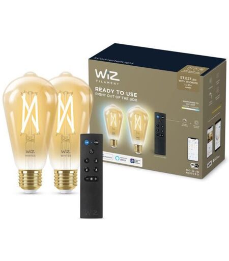 WIZ - Kit di avviamento 2 lampadine connesse Edison Bianco variabile E27 50W + Telecomando portatile dimmer