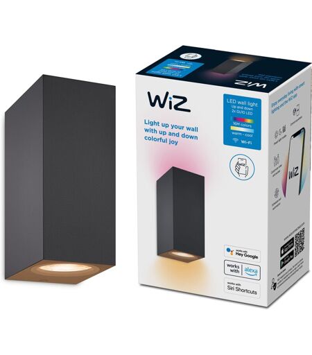 WIZ Lampada da Parete Smart Up and Down, 2 Punti Luce, Luce Bianca e Colorata, 2x5W, Wi-Fi, , Nero, Tecnologia SpaceSense, Controllo Vocale (Alexa,