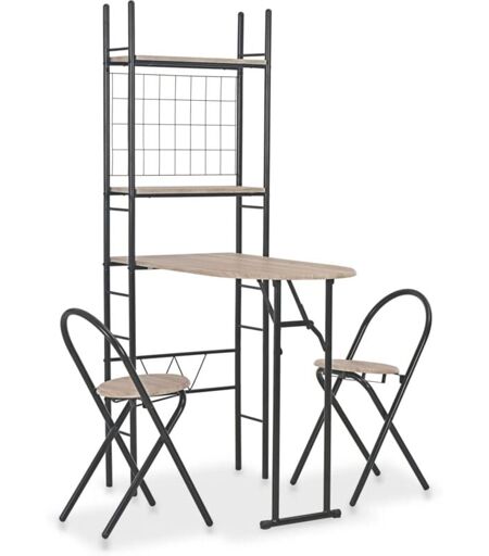 VIDAXL Set Tavolo e Sedie Pieghevoli con Scaffale 3 pz mdf e Acciaio -
