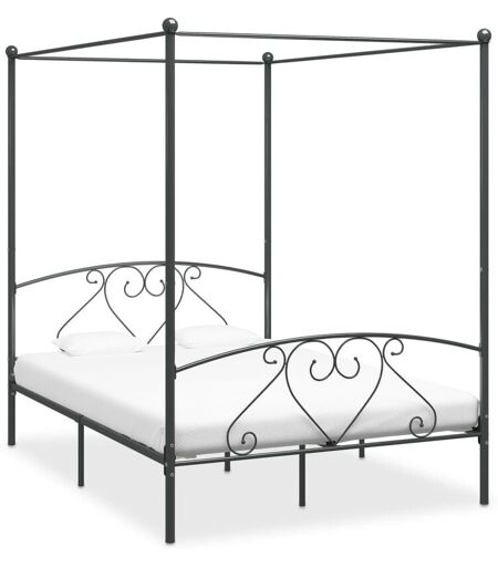 VIDAXL Letto a Baldacchino in Metallo Grigio con Decorazioni Laterali vari dimensioni dimensioni : 140x200 cm