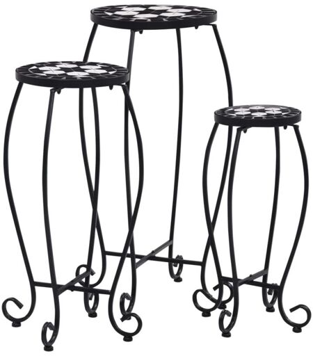 VIDAXL Tavolini con Mosaico 3 pz Nero e Bianco in Ceramica -