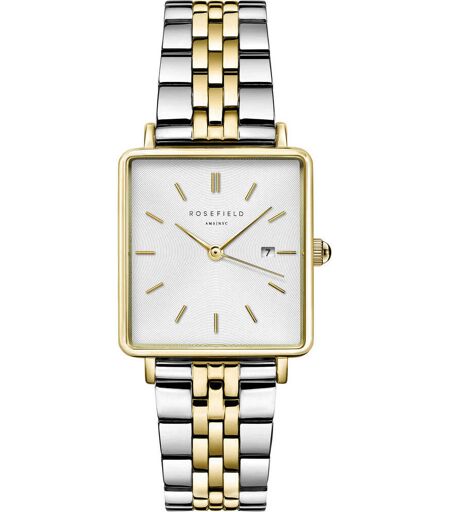 Orologio Di Rosefield Della Collezione The Boxy. Cassa Realizzata In Ottone Di Colore Oro, Di Forma Quadrata, Misura: 26x28 Mm E Spessore: 7 Mm. Quadrante Di Colore Bianco Con Vetro Minerale, Display Analogico. Cinturino Realizzato In Acciaio Inox 304 ...