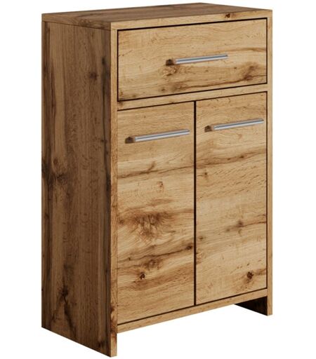 Il mobile lavabo Nemo è dotato di due ante battenti e un cassetto. Compresi i piedini associati e l'hardware di montaggio. In questo set non è incluso un lavandino o un lavandino, anche il piano è chiuso nella parte superiore. ...