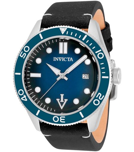 INFORMAZIONI GENERALI.Collezione:Invicta Automatic.Modello:Vintage.TARGET.Male.Casual.Adult.MOVIMENTO E FUNZIONALITÀ.SEIKO.NH35A.Mechanical.Analogue.Date.Automatic.CASSA.Stainless Steel.Silver grey.Spessore 15mm.Diametro 45mm.CINTURINO/BRACCIALE.Leather.Black.Larghezza 22mm.Lunghezza 20cm.QUADRANTE.Blue.Metal. ...